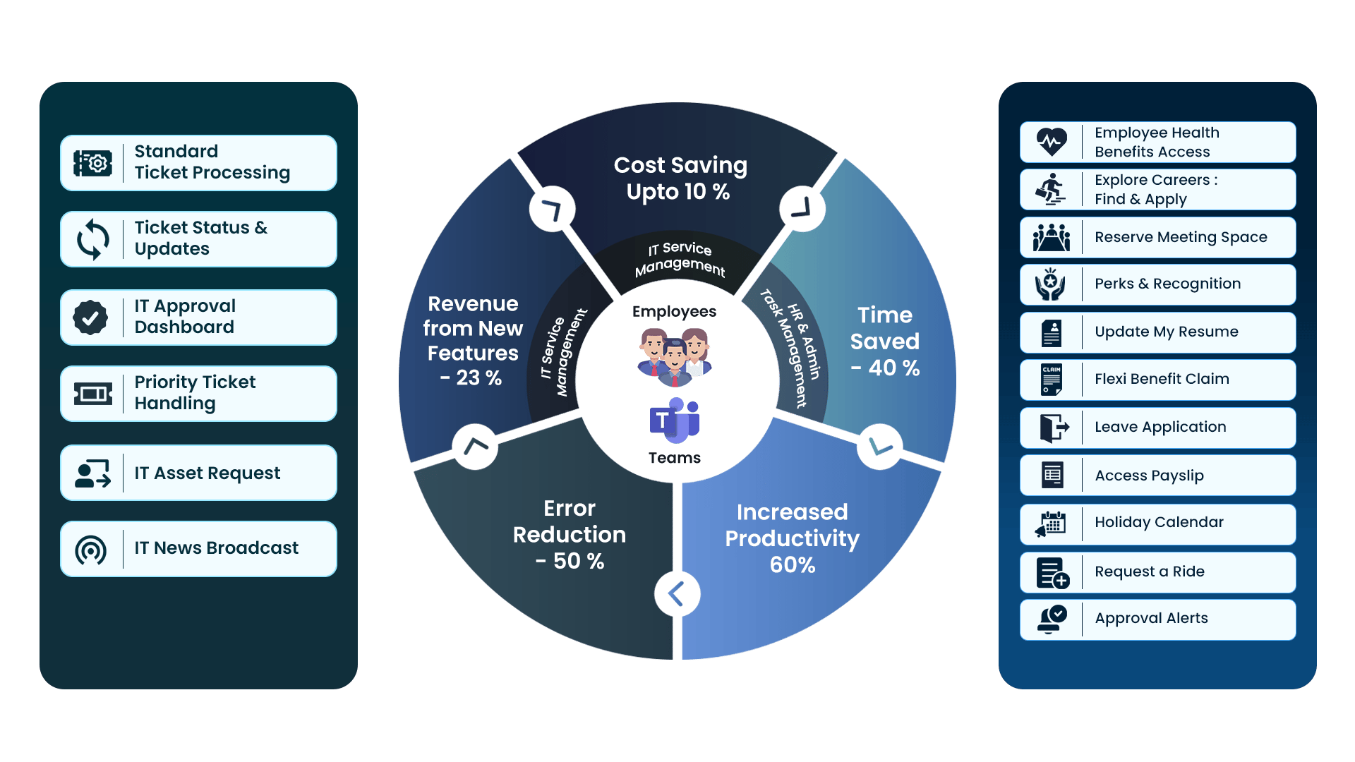 The client selected Microsoft Copilot Studio, Power Platform, and Azure OpenAI services to develop and deploy a conversational AI bot. This bot automates various tasks, provides real-time support, and integrates with multiple enterprise systems such as Microsoft Teams, ServiceNow, and the Employee Portal.